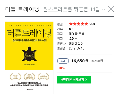 터틀 수련법이 나와 있다고 해서 기대하며 읽었는데, 이렇다할 트레이딩 기법은 나오지 않은 것 같아 실망스러웠다.