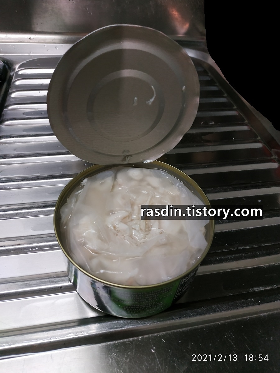 국내에서 판매되는 통조림류만 사서 먹다 보니 어느샌가 자연스럽게 집안에 구비되어있던 캔따개가 사라진지 오래였는데.. 요놈은 우리나라에서 판매하는 참치 통조림이랑 똑같이 생겨먹은 주제에 캔따개가 안 달려 있었습니다.
