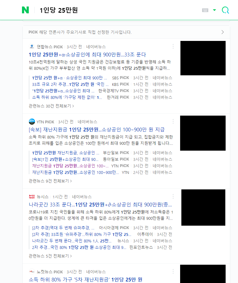 현재 정부에서 1인당 25만원씩 지급하기로 했다는 내용의 기사들이 말 그대로 쏟아지고 있습니다.