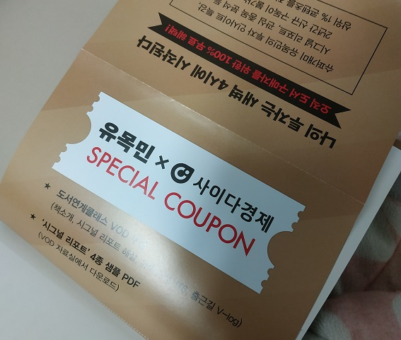 종이책의 제일 뒷면을 보면 위 이미지와 같이 사이다경제를 통해 저자의 강의를 볼 수 있는 스페셜 쿠폰이 들어있다.