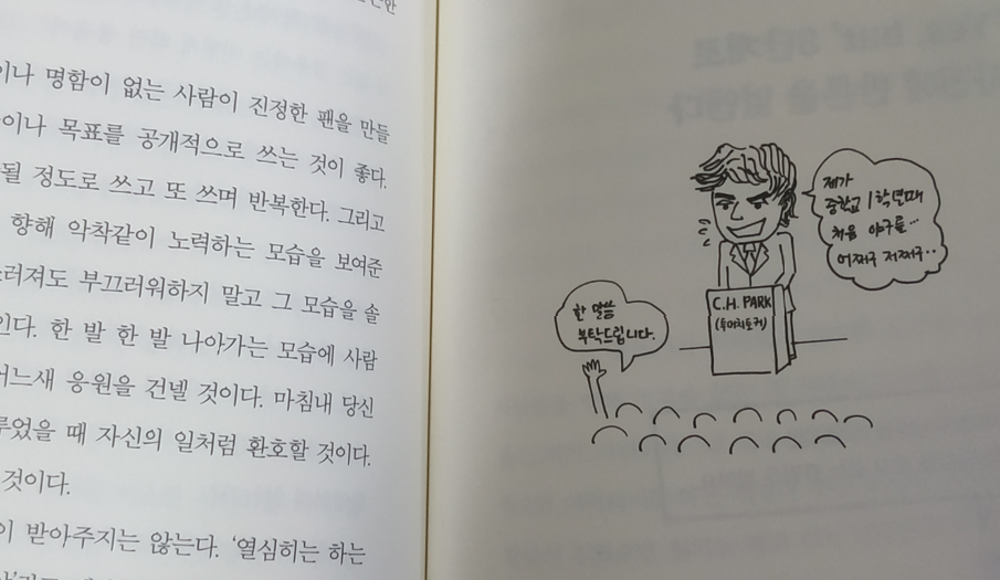 중간중간 삽입된 일러스트(삽화)에는 우리가 잘 아는 투 머치 토커, 박찬호(C.H. Park)씨의 그림이 있는 등, 책을 조금이라도 더 친근하게 느끼게 만들려고 노력한 흔적들이 보인다.