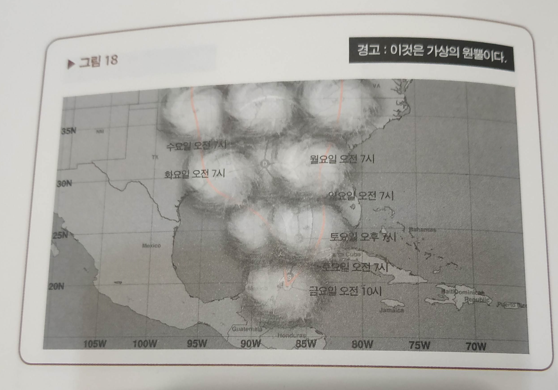 표시된 영역 중 어디로든 태풍의 이동 경로가 될 수 있다는 뜻이었다. 아래 사진과 같이 말이다.
