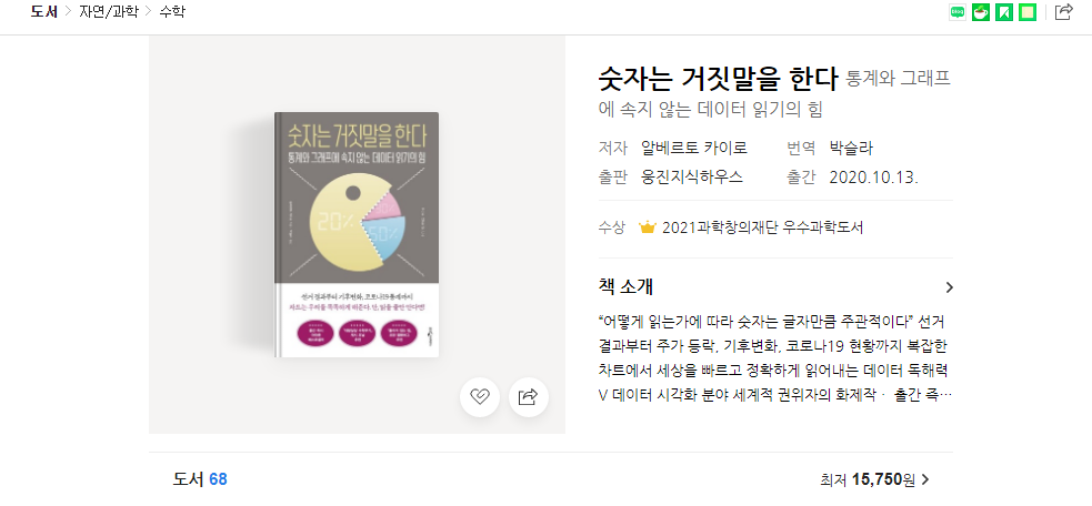책의 내용과 표지를 보면 이 책은 데이터를 기반으로 만들어진 차트, 그래프 등이 우리의 눈을 얼마나 현혹할 수 있는지를 말하고 있다.