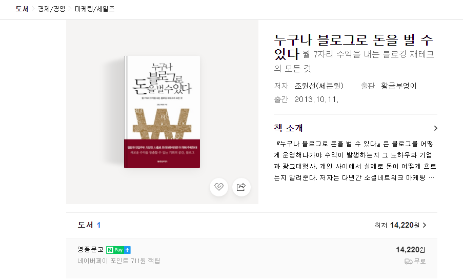 누구나 블로그로 돈을 벌 수 있다 소셜네트워크서비스 시대 - 조원선(쎄븐원)