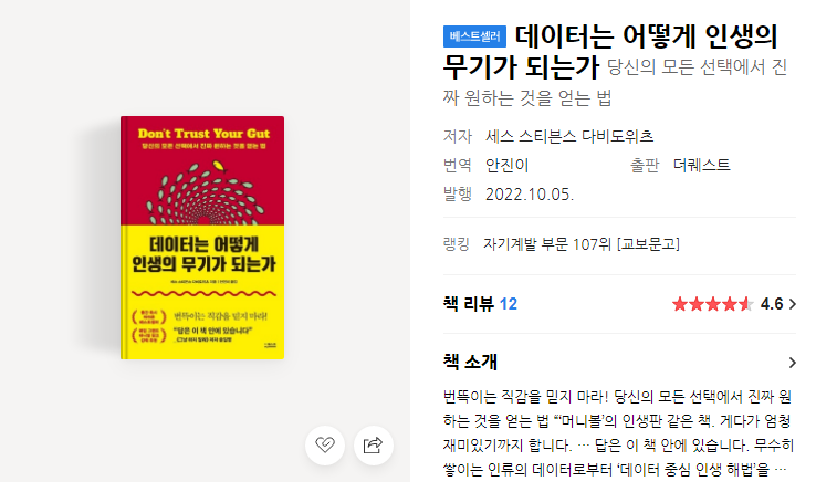 어느 정도냐면, 책의 소개만 보면 이 책은 인생에서 데이터를 어떤 식으로 활용할 수 있게 될지 두근거릴 정도다.