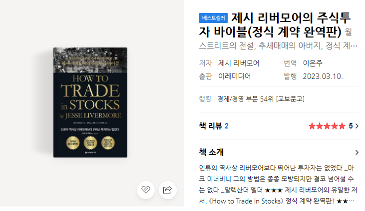 개인적으로는 피라미딩 전략, 주식 매매하는 법 등 제시 리버모어 관련 도서들의 표지가 마음에 들지 않았는데, 이번에 나온 개정판은 고급스러운 느낌이 물씬 나는 도서였다.